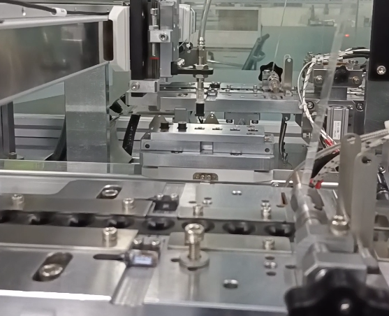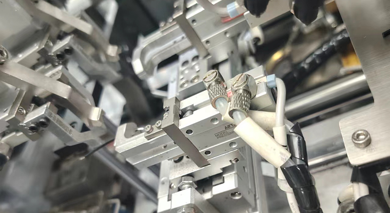 3、自動組裝:設備中的組裝模塊利用機械手或夾具完成螺絲和彈簧的對接、擰緊、焊接、粘合等組裝操作。