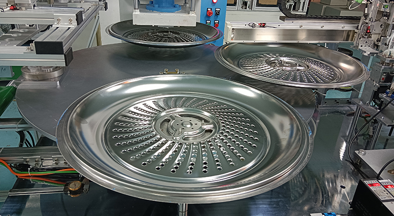 半自動轉盤式打鉚釘設備,這是一種高效、穩定的工業鉚接設備,主要用于批量生產洗衣機轉筒底盤進行鉚釘固定的半自動轉盤式打鉚釘設備(這是客戶非標定制第三臺設備)。半自動轉盤式打鉚釘設備的核心特點是結合了人工上下料的靈活性與自動化鉚接的高效性,適用于汽車制造、家電組裝、電子設備外殼加工等領域的鉚接工藝。通過轉盤式多工位設計,設備可實現連續循環作業,大幅提升生產節拍,同時降低人工勞動強度。